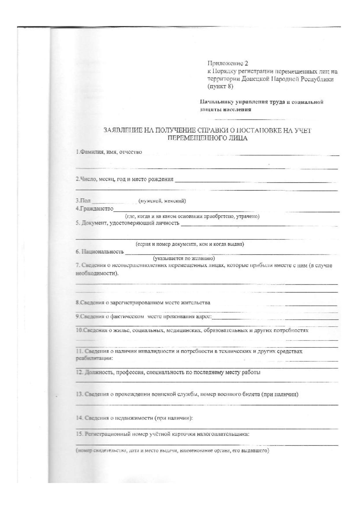 С целью учёта перемещенных лиц на территории Донецкой Народной Республики
