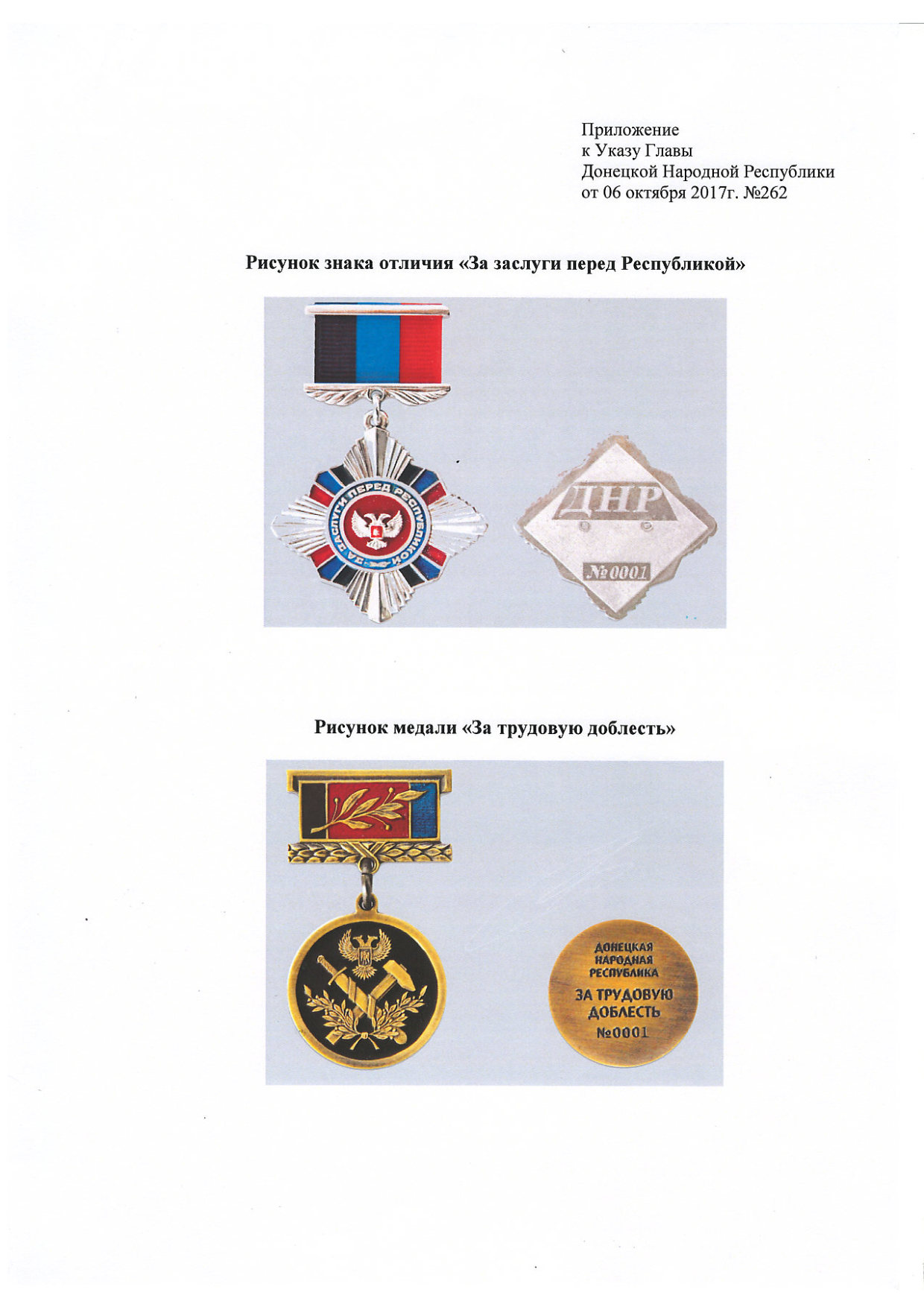 1.2. Рисунки знака отличия «За заслуги перед Республикой» и медали «За трудовую доблесть» представить в новой редакции (Приложение).