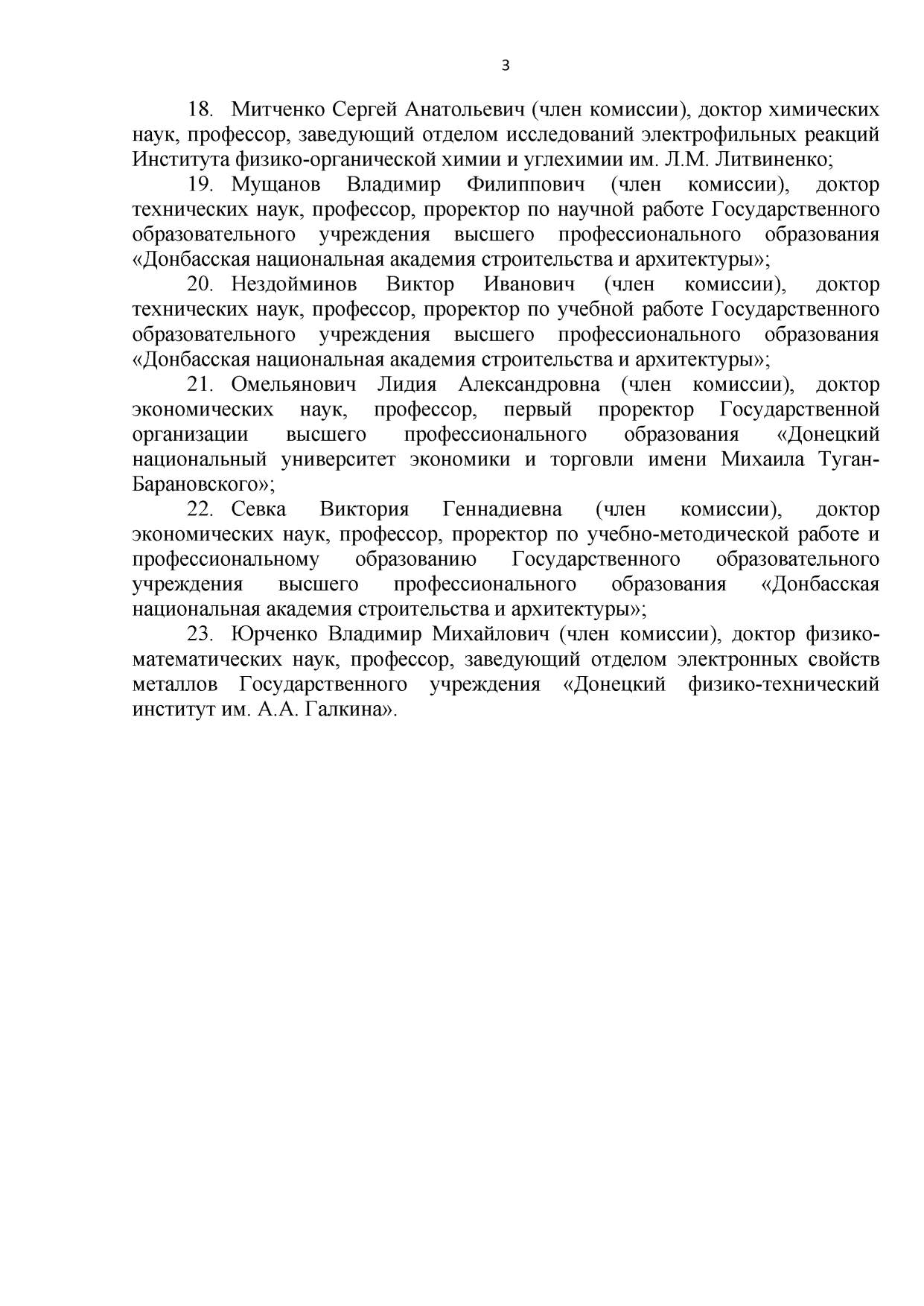 «а)1 принятие решения Советом Министров Донецкой Народной Республики об утверждении нового состава Высшей аттестационной комиссии».