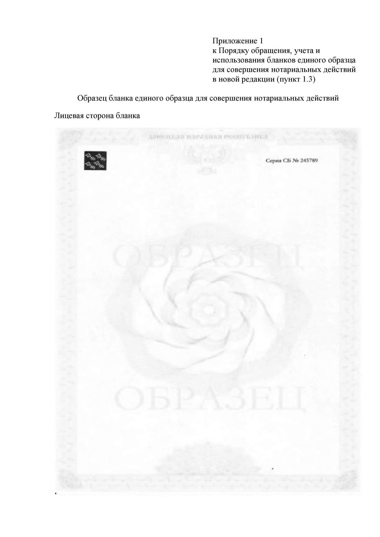 1.2. Бланк является неотъемлемой составной частью нотариального делопроизводства и документационного обеспечения нотариального процесса, используется нотариусами в Донецкой Народной Республике исключительно во время совершения нотариальных действий.