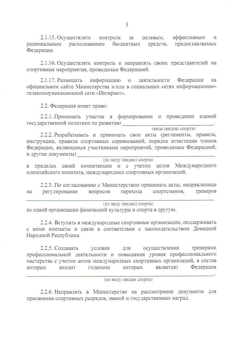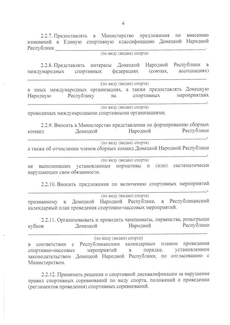 Руководствуясь пунктом 3 части 4 статьи 13 Закона Донецкой Народной Республики «О физической культуре и спорте», пунктом 3.14 Порядка государственной аккредитации общественных объединений, которые осуществляют свою деятельность в сфере физической культуры и спорта, утвержденного Постановлением Правительства Донецкой Народной Республики от 10 октября 2019 года № 30-2, с целью урегулирования и обеспечения согласованных действий по развитию видов спорта