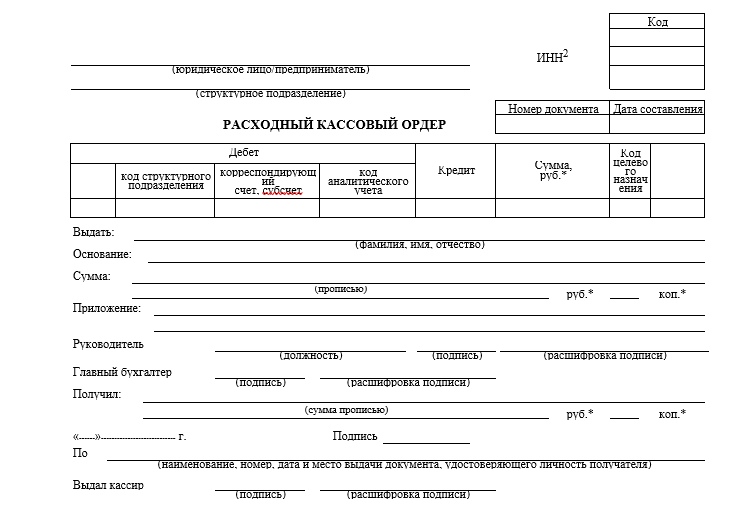 Расходный кассовый ордер № ____________ от «_____» _______________ 20____ г.