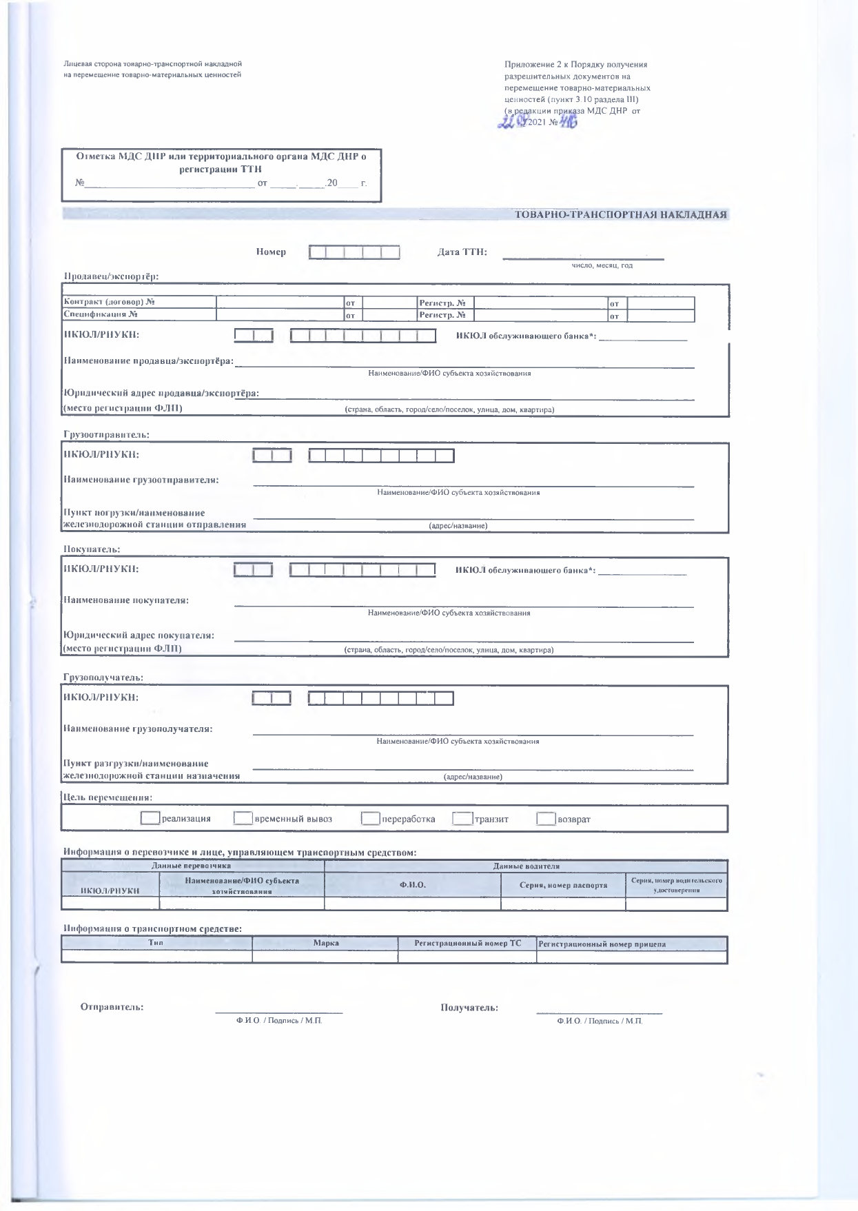 С целью усовершенствования процедуры получения разрешительных документов на перемещение товарно-материальных ценностей, руководствуясь подпунктами 3.1.22, 3.1.82 пункта 3.1 раздела III, пунктом 4.2 раздела IV, подпунктом 5.4.15 пункта 5.4. раздела V Положения о Министерстве доходов и сборов Донецкой Народной Республики, утвержденного Постановлением Правительства Донецкой Народной Республики от 12 сентября 2019 г. № 25-20,