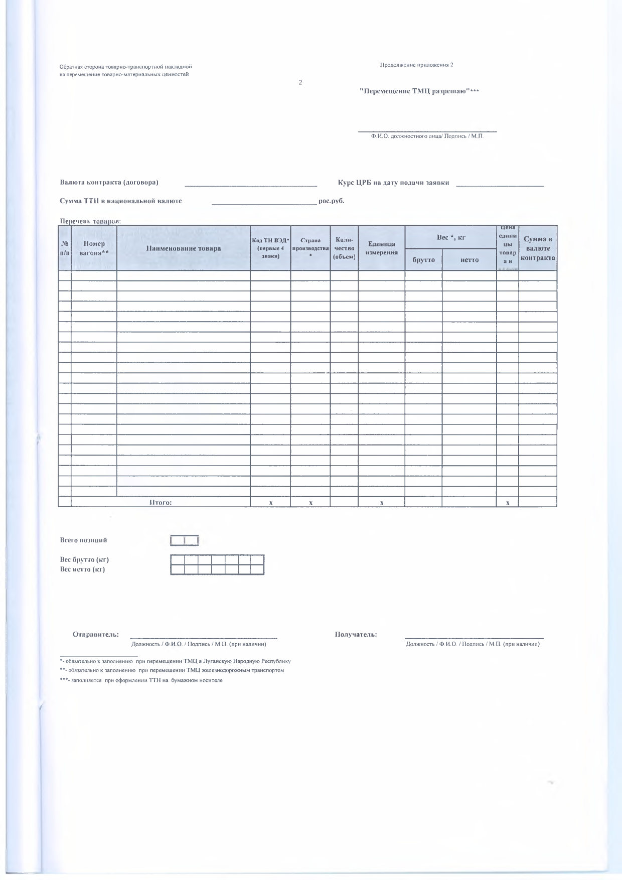 документов на перемещение товарно-материальных ценностей