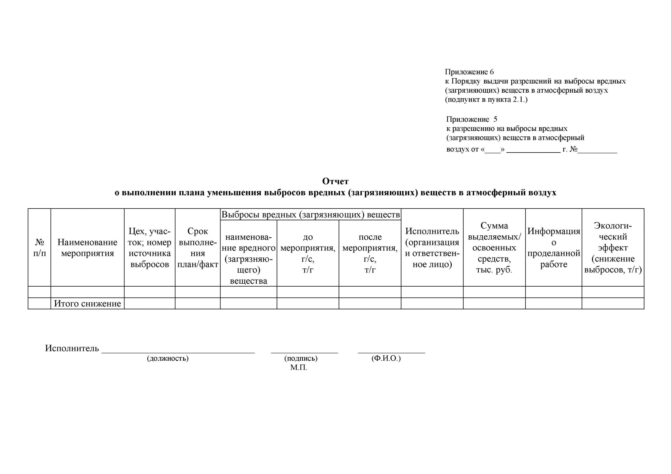 (загрязняющих) веществ в атмосферный воздух, который является неотъемлемой частью Разрешения на выбросы, и предложения по срокам достижения ПДВ, а также представляет отчет о выполнении плана уменьшения выбросов вредных (загрязняющих) веществ в атмосферный воздух, который также является неотъемлемой частью Разрешения на выбросы.