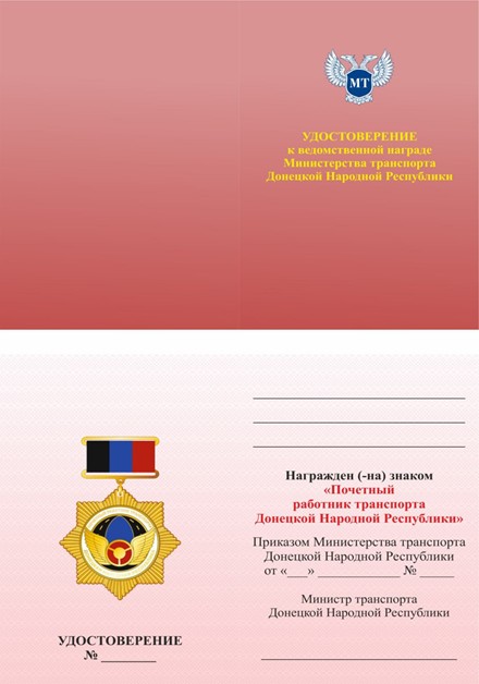 к знаку «Почетный работник транспорта Донецкой Народной Республики»